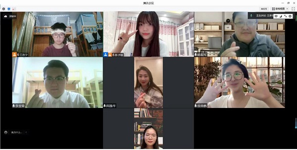 活动最后,主创师生在镜头前比心留念,共同庆祝共青团成立一百周年。同时向学院团员“逆行者”致谢,感谢在抗击新冠肺炎疫情斗争中,青年团员加入志愿者行列,协助学院构筑起疫情防线。