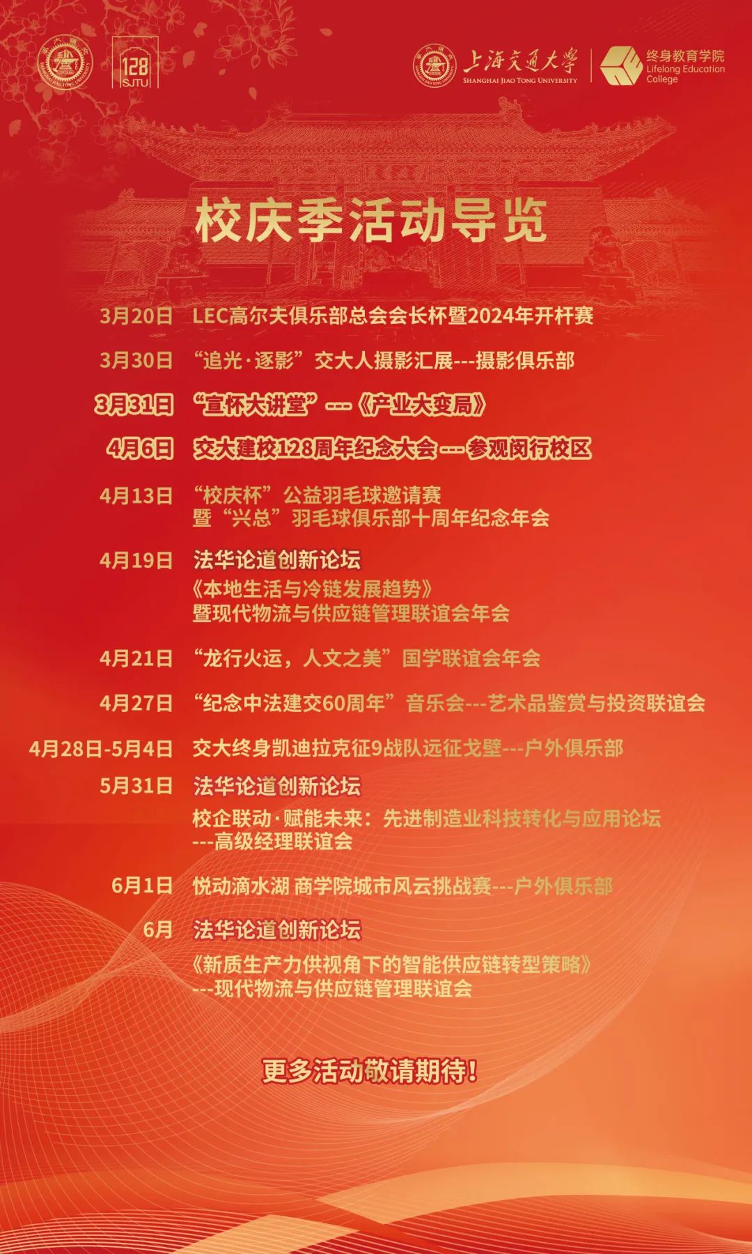 情系交大,思源致远!2024年4月6日,我们挚爱的母校即将迎来她128周岁的华诞!