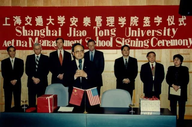 当天,双方举行了简单而隆重的签约仪式,时任上海交大校长翁史烈院士、安泰国际集团总裁柯溥仁作为双方代表签约,原上海市副市长谢丽娟出席仪式并对交大管理学院与美国安泰国际集团的成功合作表达了高度赞扬和充分肯定。