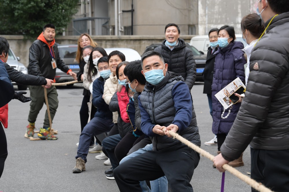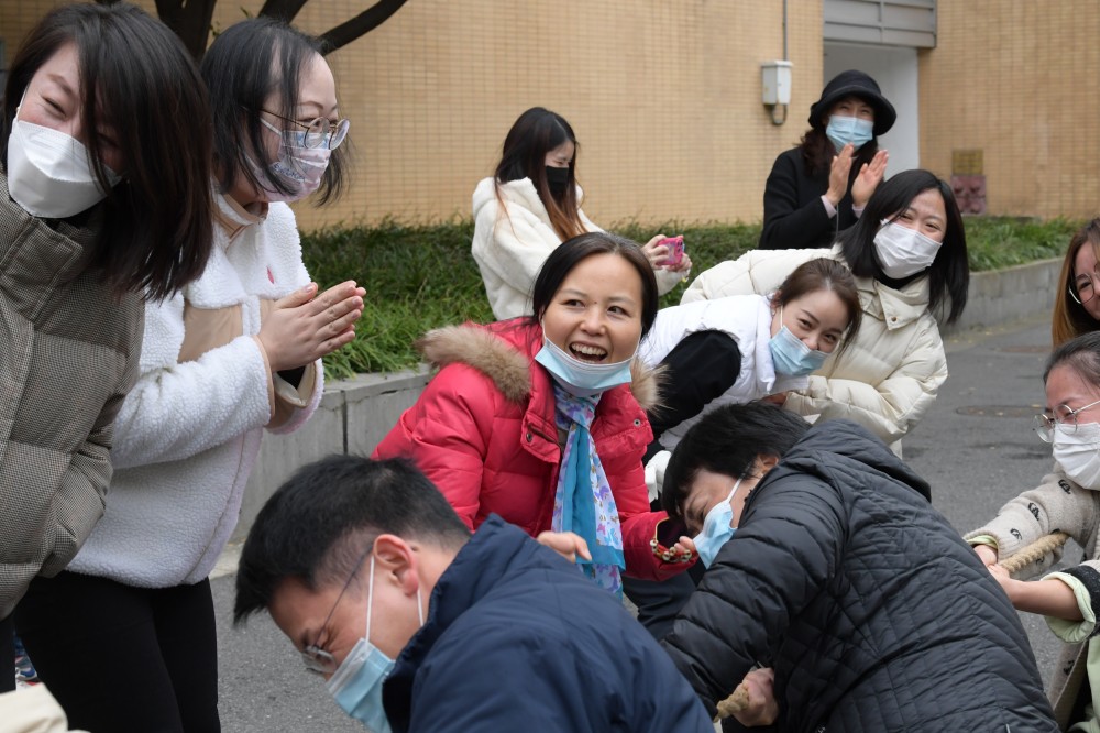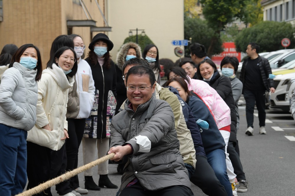 随后,长宁校区的老师来到主楼楼下,七宝校区的老师来到操场,参加工会组织的体育运动。尽管温度骤降,寒风阵阵,参与短绳、长绳和拔河比赛的老师们充满活力,斗志昂扬。参加跳绳的老师们身轻如燕,灵巧地跳出了一分半时间里超过200个的好成绩。参加拔河比赛的四支队伍奋力比拼,每一场都高潮迭起,扣人心弦。经过激烈的比拼,终于决出了最后的胜利者。学院将坚持交大“崇尚体育”的文化传统,积极倡导“每天锻炼一小时、健康工作五十年、幸福生活一辈子”,为员工组织更多更精彩的工会活动。