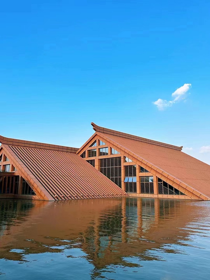 走近广富林文化展示馆,老师们惊叹地发现,展示馆的展览空间设置在水下,而一座座仿佛金字塔般的屋顶漂浮在湖中,整体设计匠心独特、美不胜收。老师们充满期待地走进展示馆,馆内场景从远古慢慢过渡到近现代,通过文字介绍、现场模拟、实物展示等方式,让大家了解到广富林考古发掘的过程、上海成陆的演变、崧泽文化、良渚文化、广富林文化的演变、上海城市的崛起、以及走向未来的希望,在时光隧道中充分体验和阅读上海的来龙去脉、发展历程。