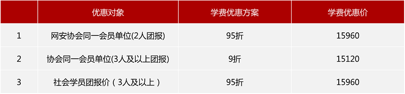 16800元/人(含课程实施、教材物料、教学场地、教学管理、茶歇等),最低开班人数30人。