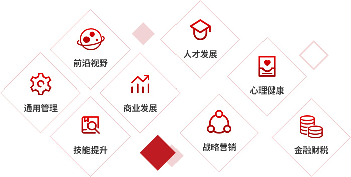 课程覆盖通用管理、战略营销、人才发展、技能提升、商业发展、金融财税、前沿视野、心理健康等八大板块,系统提升组织在数字化时代下的管理运营能力和运营绩效。