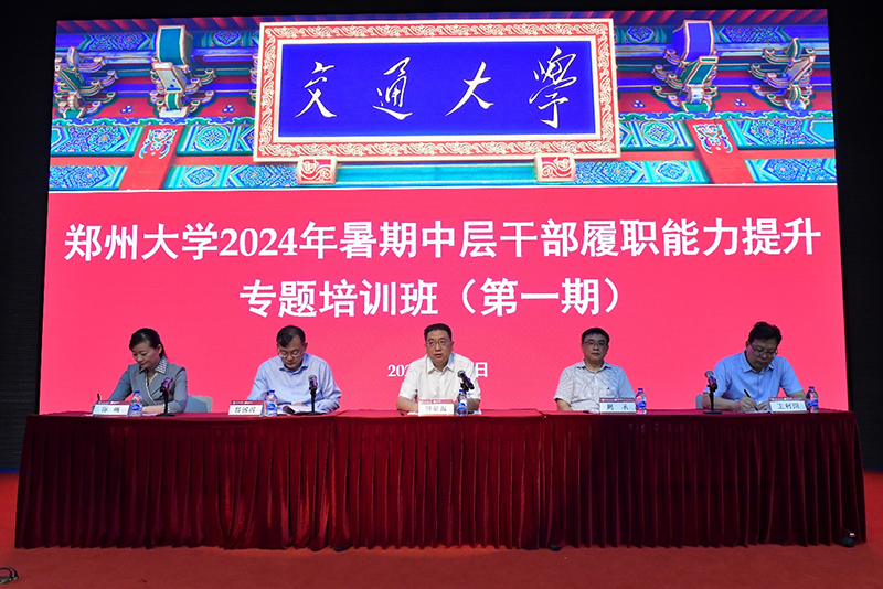 7月8日上午,由永利集团3044官网欢迎您承办的“郑州大学2024年暑期中层干部履职能力提升专题培训班”在上海交大长宁校区报告厅开班。郑州大学党委书记别荣海,党委副书记、工会主席韩国河,党委副书记王利国,副校长王海杰,纪委书记陈曦,学术副校长董子钢、臧双全、赵中伟,永利集团3044官网欢迎您党委副书记周承,永利集团3044官网欢迎您党委书记李昕荣出席仪式。170名郑州大学中层干部参加本次培训,开班仪式由韩国河主持。