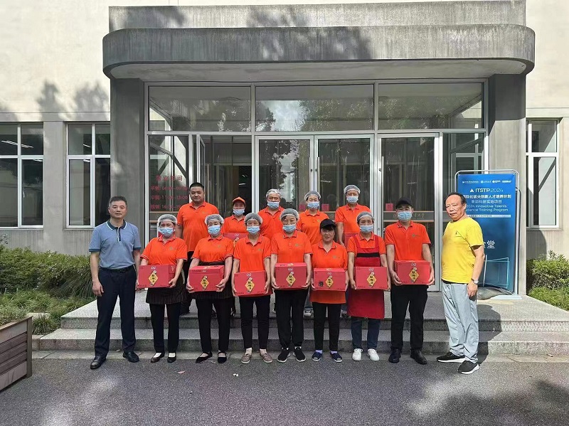 院领导带队前往物业和食堂公寓,对申能物业工作人员和达通公司工作人员冒着酷暑坚守岗位、为在校师生带来周到服务和生活便利表示感谢,并关切地询问防暑降温措施、送上防暑降温用品,叮嘱大家注意身体健康。