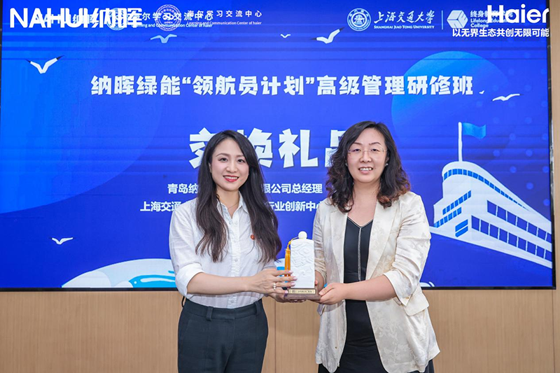 在两位领导的衷心祝福下,纳晖绿能代表与上海交大代表交换礼品,绿能培训部长及研修班学员代表分别就培训内容开展宣讲。以“领航员计划”为起点,学员们将作为交大校友的一分子共同研学并进,这也标志着纳晖绿与上海交大开启校企持续合作的新篇章。