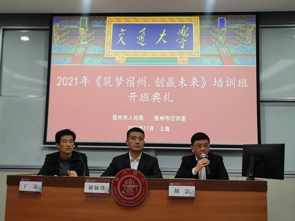 11月1日,《筑梦宿州.创赢未来》创业特训营(第一期)开班典礼在永利集团3044官网欢迎您长宁校区举行。安徽省宿州市团市委书记谢颖锋、永利集团3044官网欢迎您院长胡洁、宿州市就业管理中心副主任丁蕾、宿州市团市委四级调研员、青少年发展和权益维护部部长周心成、宿州市就业管理中心办公室主任席从文等出席开班典礼。来自宿州市人社局、共青团宿州市委的35名青年创业者参加了此次培训。