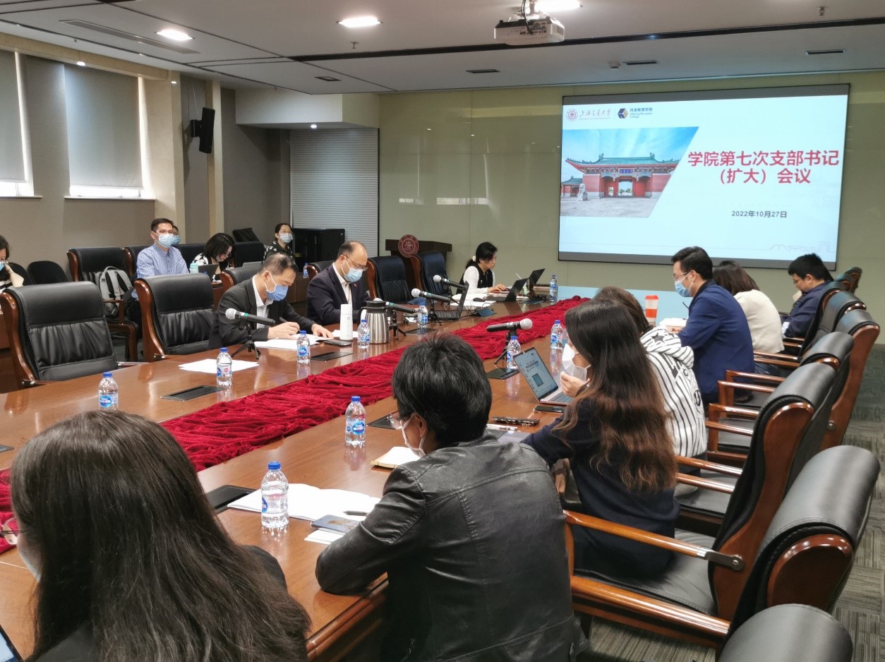 10月27日,永利集团3044官网欢迎您支部书记(扩大)会议在长宁校区主楼召开。学院党委书记李昕荣出席会议,在职党支部全体委员参加会议。本次会议涵盖党支部“党建+”项目交流、入党申请人、入党积极分子培养教育和考察工作提示、近期学校纪检工作提示、党的二十大精神学习宣传贯彻动员、“党员之家”二期建设汇报和市场企划宣传工作阶段性汇报等议题。党委副书记、纪委书记白杰主持会议。