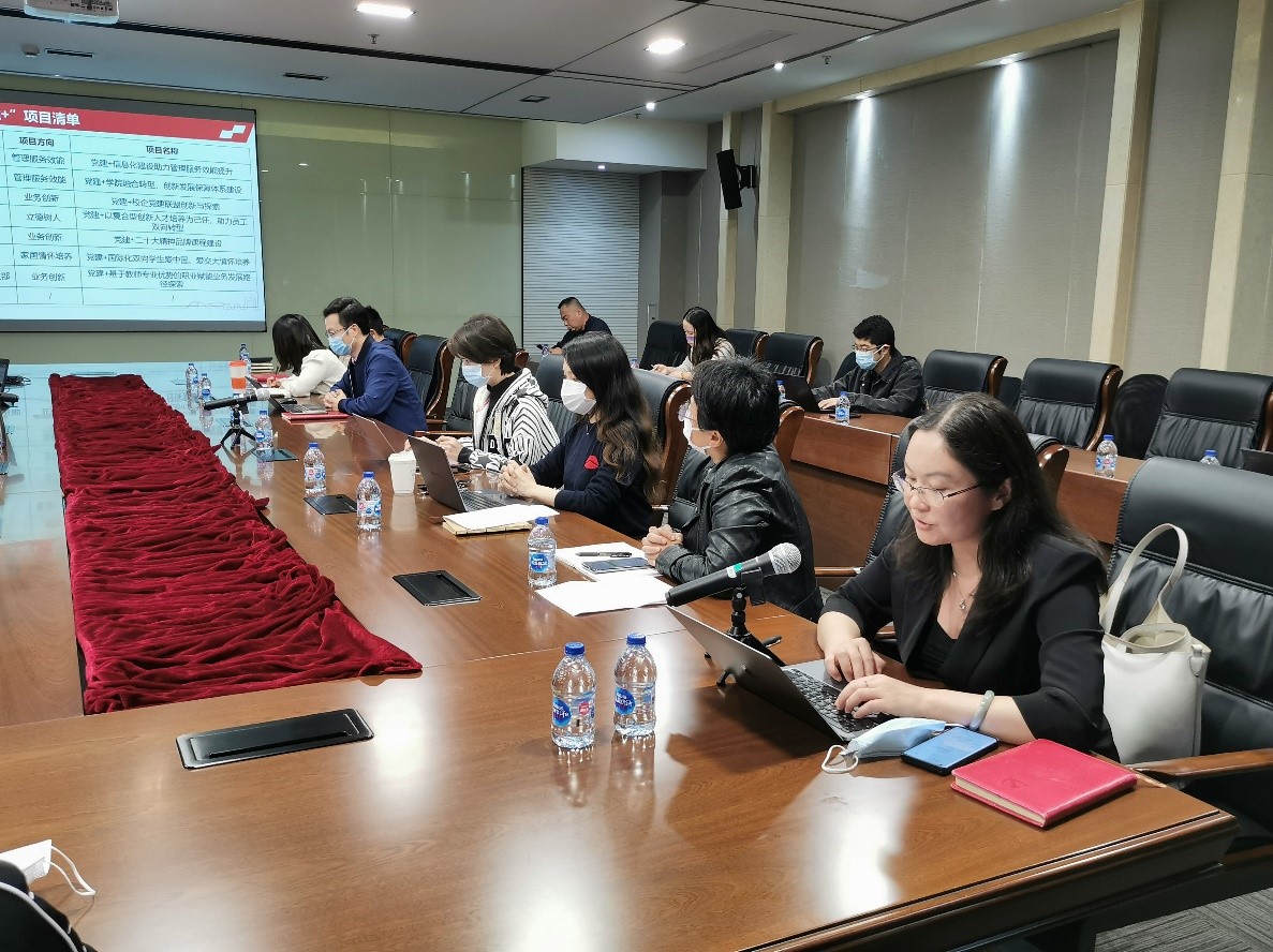 市场企划宣传中心副主任孙延敏汇报中心阶段性工作,主要包括分阶段、成体系推进品牌和市场工作,逐步推进业务中心调研需求,加强规范建设和渠道建设,规划校区文化建设,梳理品牌内容,活动策划筹备等,着重强调守好意识形态工作底线红线。