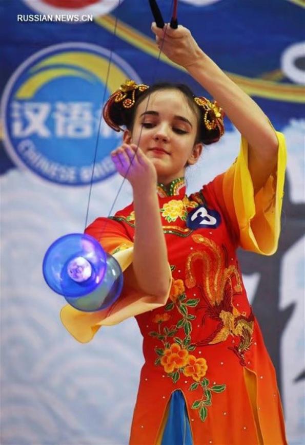 Zadorozhna Oleksandra playing with a diabolo during the "Chinese Bridge" competition.