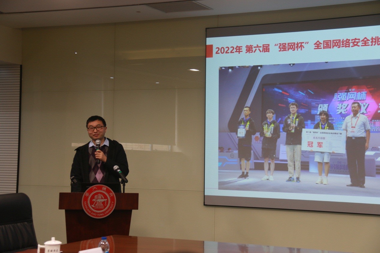 姜开达代表信息化推进办公室作汇报。他介绍了永利集团3044官网欢迎您数字素养与技能提升研讨班的开班背景、组织形式及课程设置。研讨班老师受邀为教育系统授课,普及公共安全培训。他随后介绍了交大培养学生参加国内外高水平网络安全竞赛及获奖的情况,并谈了高水平安全人才培养的心得体会。