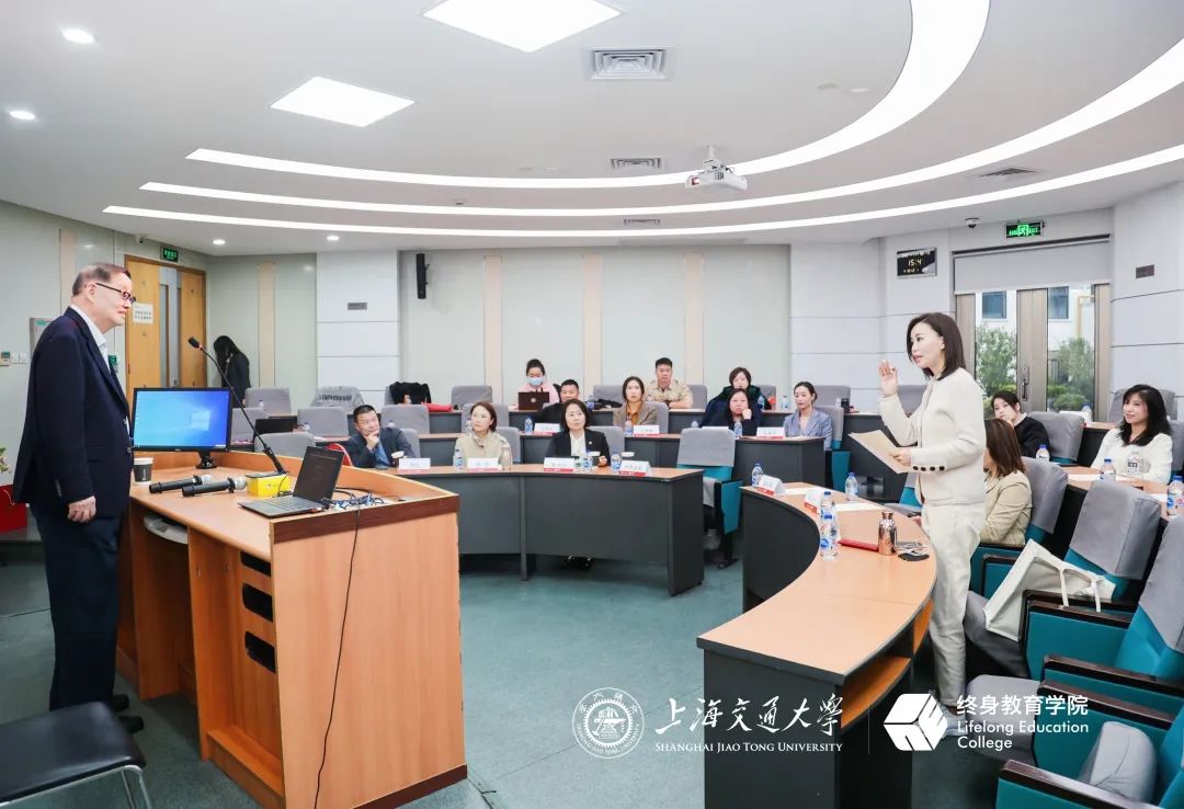 结业学员代表李玮同学上台发言。她表示在交大品牌班的学习过程中,不仅结交了朋友,对生活和事业也有了新的改观,对待周遭充满热爱和正能量。