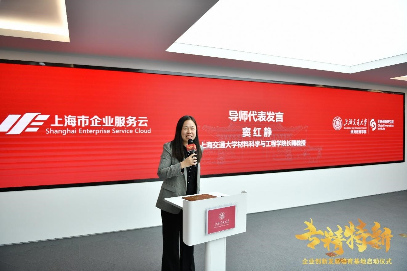 窦红静教授作为导师代表发言。她表示,交大导师们一定会不负所托,将国际前沿的科研成果和科学技术带到企业中去,全力支持“专精特新”企业实现技术突破和创新发展,打通从科技强到企业强、产业强、经济强的通道。