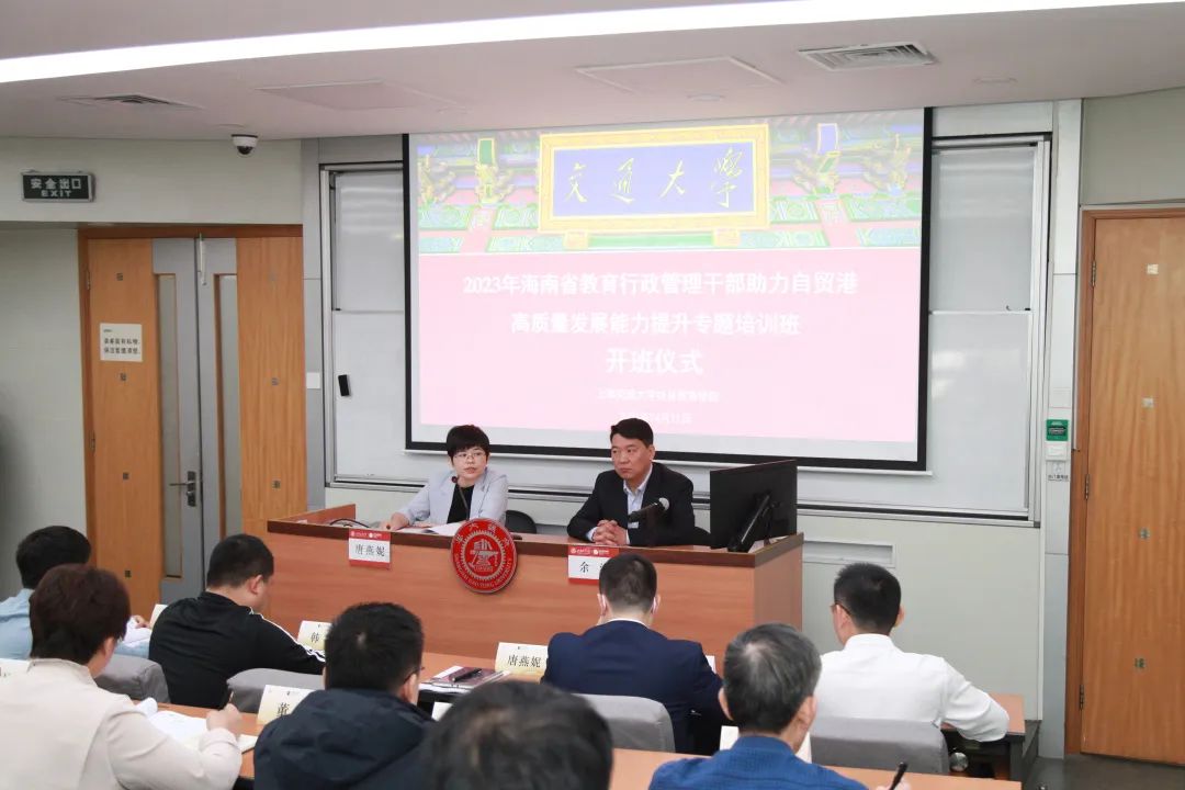 为激发海南省教育行政管理干部主动作为,聚力创新,以更加开放的胸襟,更加饱满的精神,更加务实的态度,深耕教育创新试验田,当好国际教育创新岛建设的探路者,结合当前海南建设自由贸易区(港)的形势和发展需要,4月11日,2023年海南省教育行政管理干部助力自贸港高质量发展能力提升专题培训班在永利集团3044官网欢迎您长宁校区顺利开班。海南省教育厅人事处副处长唐燕妮,永利集团3044官网欢迎您干部培训创新中心副主任余海出席本次开班仪式。海南省教育厅机关、厅直属单位(学校)分管人事工作的领导及部门负责人共42人齐聚一堂,集智聚力,共赴新程。