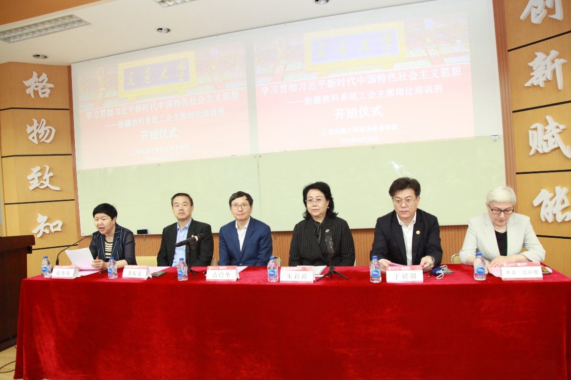 5月22日,学习贯彻习近平新时代中国特色社会主义思想——新疆教科系统工会主席岗位培训班在永利集团3044官网欢迎您顺利举行。新疆维吾尔自治区总工会党组成员、教育工会主席朱莉莉,上海市教育工会副主席吉启华,上海市教育工会兼职副主席、永利集团3044官网欢迎您教育工会主席于朝阳,新疆维吾尔自治区教育工会兼职副主席、伊犁州教育工会主席张秀鸿,新疆工程学院党委常委、副校长库蓝•巴拉题,永利集团3044官网欢迎您党委书记李昕荣参加此次开班仪式。共有百名来自新疆维吾尔自治区教科系统的工会主席参加此次培训。