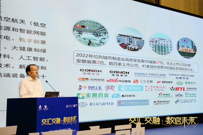 活动特邀芜湖市人民政府副市长蔡毅发表讲话。他对此次活动的成功举办表示衷心祝贺,并指出芜湖作为拥江发展的安徽省域副中心城市、省内第二大经济体,近年来紧抓发展机遇,持续优化营商环境,大力扶持航空航天(低空经济)、新能源和智能网联汽车、人工智能、新一代信息技术、新能源和节能环保、高端装备制造等新兴产业发展,取得积极成效,期待更多优秀企业家汇聚芜湖,共商共建,共创未来。
