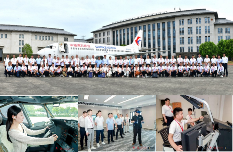 当天下午,同学们前往东方航空技术有限公司进行现场参访。东方航空技术有限公司培训部孟军书记为同学们做《十年磨一剑,大国重器C919乘风而起!》主题分享。随后同学们分批次体验模拟机并参访了5G数字化智能工具间。通过现场教学,大家不仅对中国大飞机的历史及C919的商业运营、技术特点有了全面的了解,也切身体验了驾驶飞机翱翔蓝天。
