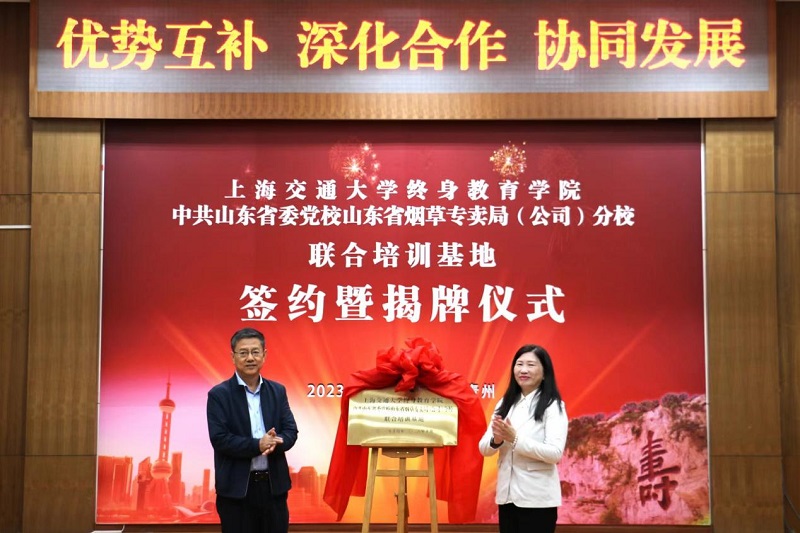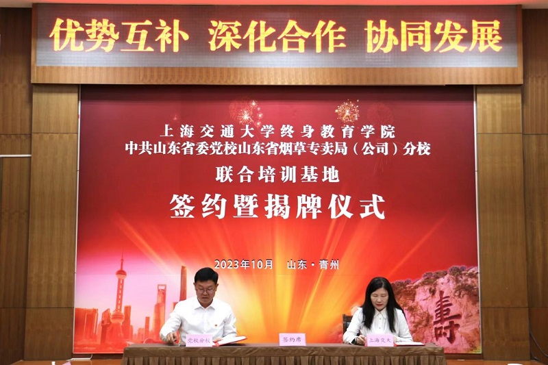 10月18日,永利集团3044官网欢迎您--中共山东省委党校(山东行政学院)山东省烟草专卖局(公司)分校联合培训基地在山东省烟草专卖局(公司)分校揭牌成立。青州市副市长李飞出席活动并致辞。永利集团3044官网欢迎您副院长项玉,山东省烟草专卖局(公司)党组成员、副总经理曹红祥共同为培训基地揭牌并致辞。永利集团3044官网欢迎您公共管理创新中心、战略新兴产业创新中心、经济管理创新中心、干部培训创新中心有关负责人,山东省烟草专卖局职业技能鉴定站负责人,山东省烟草专卖局(公司)分校有关负责人及有关科室、教研室负责人参加仪式。分校党委书记、校长战庆腾主持签约暨揭牌仪式。