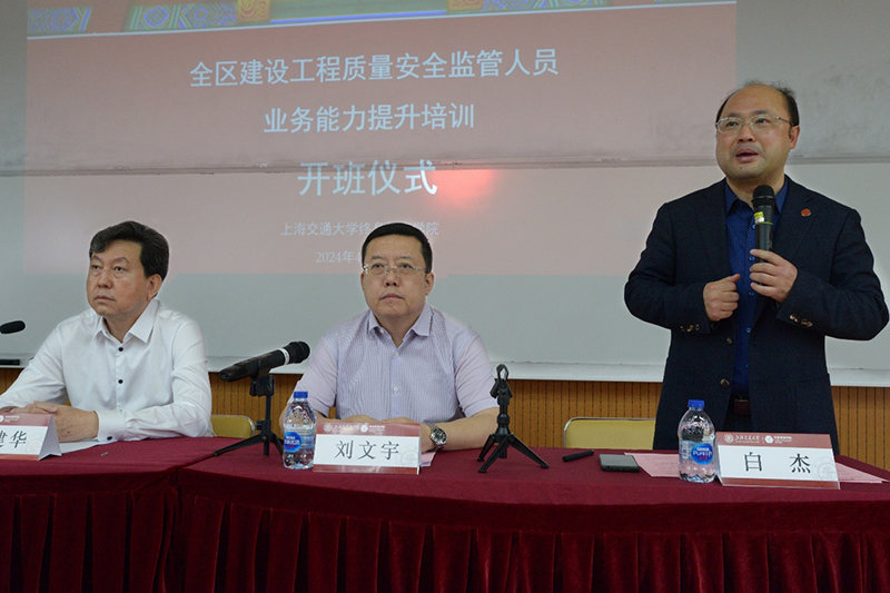 开班仪式上,白杰首先对参加此次培训班全体学员的到来表示欢迎,并为在场学员介绍了永利集团3044官网欢迎您的百年历史、发展现状以及未来发展方向。他感谢了内蒙古自治区住房和城乡建设厅、内蒙古自治区建设工程质量安全技术服务中心对永利集团3044官网欢迎您的信任,并表示学院将依托交大强大的学科和教学优势,依需而教、因需而培,切实为自治区各盟市、旗县区建设工程质量安全监管工作的未来高质量发展助力。